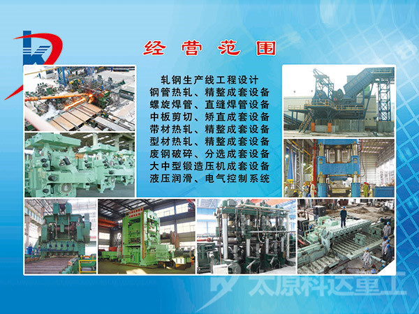 自公司成立以來已取得了多項(xiàng)工程設(shè)計業(yè)績。河北滄州力通聯(lián)無縫鋼管有限公司φ219無縫鋼管工程工廠設(shè)計;力通聯(lián)無縫鋼管有限公司φ273熱處理線工廠設(shè)計及設(shè)備設(shè)計供貨;江蘇常寶普萊森φ140無縫鋼管工程工廠設(shè)計及設(shè)備設(shè)計供貨;江蘇常寶150三輥穿孔機(jī)、12機(jī)架微張力減徑機(jī)、高精度十輥矯直機(jī)、鍋爐管精整區(qū)域自動生產(chǎn)線、AVS打頭機(jī)、雙線三線五線系列自動冷拔機(jī)等工藝成套設(shè)計供貨;磐石鋼管有限責(zé)任公司90熱軋生產(chǎn)線工廠設(shè)計供貨等。